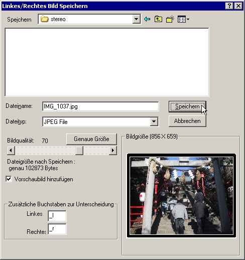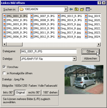 Sofern zwei digitale Kameras zur Aufnahme verwendet werden, ist es nicht erforderlich daß sich die Bilder beider Kameras im gleichen Verzeichnis befinden. Alle Bilder können zur weiteren Nachbearbeitung in ihrem jeweiligen Verzeichnis bleiben.