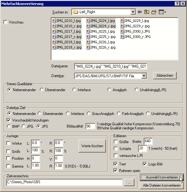 Mehrfachkonvertierung/erstellung von Stereobildern mit festen Ausrichtungsparametern