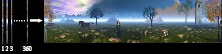 Rundumdrehung eines 360° Stereo Panoramas (benötigt keine quad-buffer OpenGL Grafikkarte)