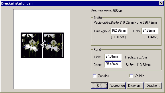 Beim Ausdruck zusätzlich Rahmen ausdrucken lassen