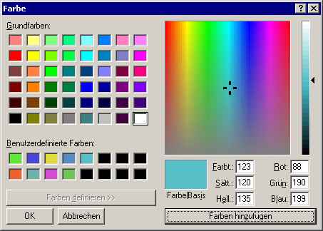 Diese "Dreifarbenpalette" besteht aus einem äußeren, mittleren und inneren Rahmen und man kann einzeln die Farben wählen aus 48 Grundfarben oder 16 gebräuchlichen, benutzerdefinierten Farben.