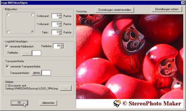 'StereoPhoto Maker' darf nicht ohne schriftliche Genehmigung von 'Masuji SUTO' auf CD-ROMs oder andere Medien angeboten und weitergegeben werden.