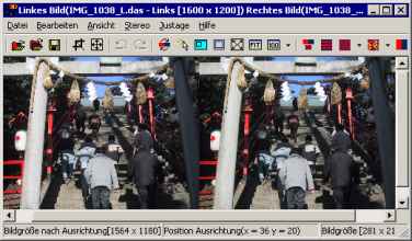 in Fenstergöße und Anaglypendarstellung: Ausrichtung der Bilder zueinander