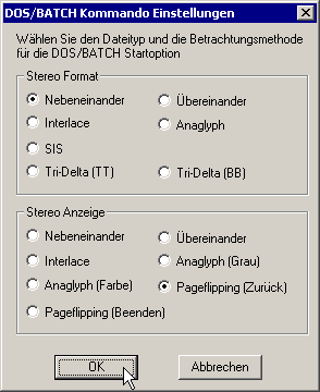 Stereo und Darstellungoptionen entsprechen den unter DOS Start Einstellungen definierten Optionen.