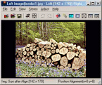 Um die Genauigkeit bei der Ausrichtung zu erhöhen können die Bilder in Originalgröße (100%) dargestellt werden. hierzu ist der Schaltknopf [100%] oder ein Doppelklick auf das Bild durchzuführen. Durch einen Doppelklick kann man zwischen Originalgröße und Fenstergröße des Dialogfensters umschalten. In der Originalgrößendarstellung kann man mit Hilfe der Maus (bei gerückter linken Maustaste) das Bild im aktiven Fensterausschnitt verschieben.