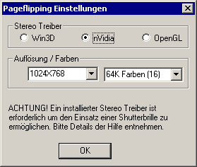 Hier läßt sich die korrekte Pageflipping Einstellung vornehmen (Auflösung und Farbtiefe).